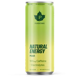Natural Energy Pear je první nápoj Puhdistamo, který se zaměřuje nejen na energii, ale i na hydrataci. Zcela nová kombinace přírodního kofeinu a elektrolytů dělá z Energy Pear funkčnější nápoj než všechny předchozí varianty. Šťavnatá hrušková chuť dotváří celý zážitek – svěží, jemná a bohatě ovocná.