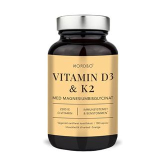 Vitamin D3 & K2 + magnesium (nově v balení 180 kapslí) obsahuje tři složky zaměřené na oblast imunitního systému a stavu kostí, které působí ve velmi efektivní vzájemné synergii. Vitamín D3 zvyšuje vstřebávání vápníku do organismu a ovlivňuje tvorbu kostní hmoty, vitamín K2 zajišťuje, že vápník je transportován na správná místa, a hořčík funguje v těle jako aktivátor vitamínu D3.